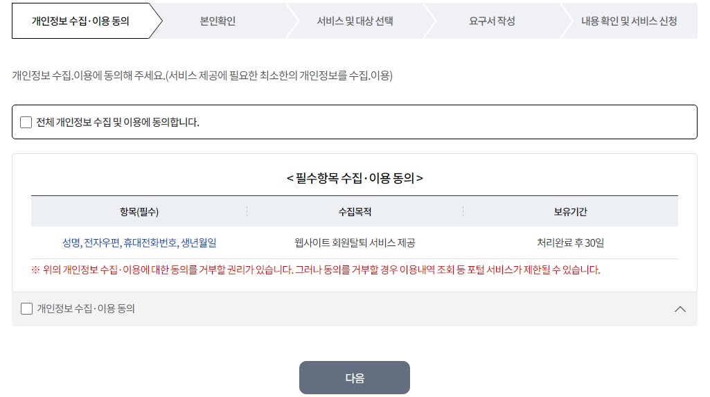 웹사이트 회원 탈퇴 서비스 이용 방법
